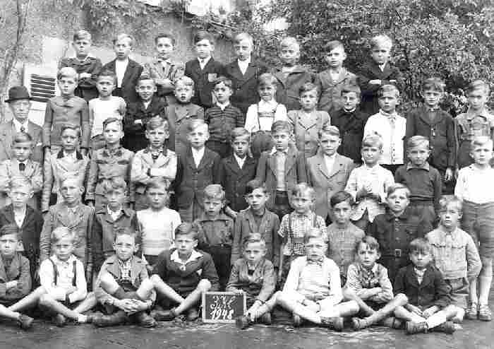 We note a German primary school class in 1948. They are a third year class and all boys. Gender separation appearently ws still quite common in 1948. A few of the boys wear lederhosen, but there may be more as many have jackets. We note that several boys have Bavarian jackets. We are not sure where theis photograph was taken, but we suspect Bavaria.