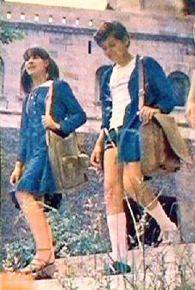The principal schoolwear item appears to have been a blue jacket-like smock that both boys and girls wore. We note quite a few images of Hungaraian school children wearing what look like blue smocks. They are styled rather like front buttoning jackets. A 1969 film shows Hungarian boys wearing blue front-buttoning school smocks. HBC is unsure how common this was, but it looks to have been very common. The smock appears to have been required as all the boys in the film were wearing them. Hungary at the time had a Communist Government with a very centralized school system. School regulations such as wearing smocks might have been set by the central Government rather than each individual school, but few details are currently available. Magazine images into the 1980s show children wearing these jacket-like smocks. Given the fact that the boys tended to unbutton them after school, they do not seem to have been very popular.