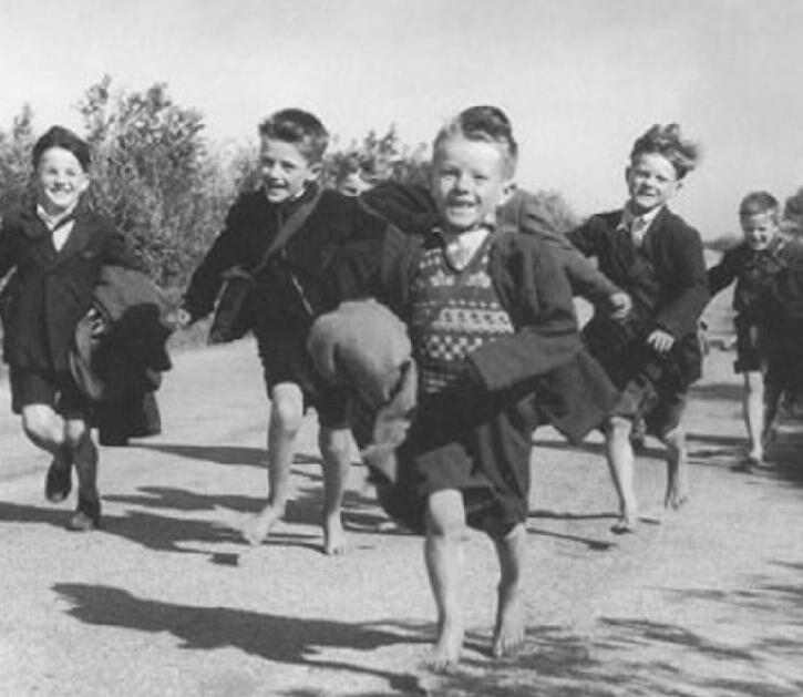 ![]() Figure 1.--Here we see Irish school boys running home from school in their bare feet during the 1950s. At this time Irish children, especially in rural areas often went to school in the summertime without shoes. |