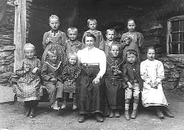 We notice an image at a small rural school near the French border (figure 1). It was at Cerlogne. Several of the girls wear smocks over dresses. The smocks seem to have been made by their mothers. The boys wear sailor suits and other suits. Boys wear both kneepants and long pants. The photograph was taken in 1918, probably while World War I was still in progress. The building in the background is presumably the school.