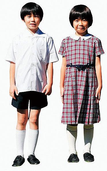 The school has a very informal summer uniform, at least for the boys. Substantial parts of the Japanese archgepeligo have warm climates. The 1st and 2nd graders wear a whuite cap. They boys wear a collared sports shirt that does not have to be tucked in with short pants with white knee socks. The girls wear a light-weight summer dress, also with white knee socks. The boy's outfit hardly looks like a uniform especially with shorts that are not tucked in. Light weight summrr dresses for the girls, in contrast, are commonly worn in many countries as a school uniform outfit. the boy's uniform, informal as it msay be was a set unifiorm. The gurrl's unifirm in contrasrt was just one of msany styles thst the girls could select.