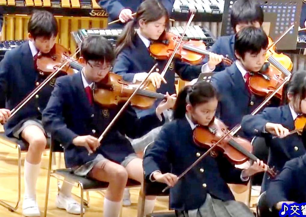 Toin Gauken primnary school orchestras had violin sections. It was the only string instrument in the orchestra. There were no cgellos or bases, only violins. This presumably reflkects the instrumental instruction available at the school. All of the rchestras we have been able to find had a substantial violin sections. These of course were some of the children with real musical talent. We are guessing that these children had been taking violin lessons for some time, but we have no details.
