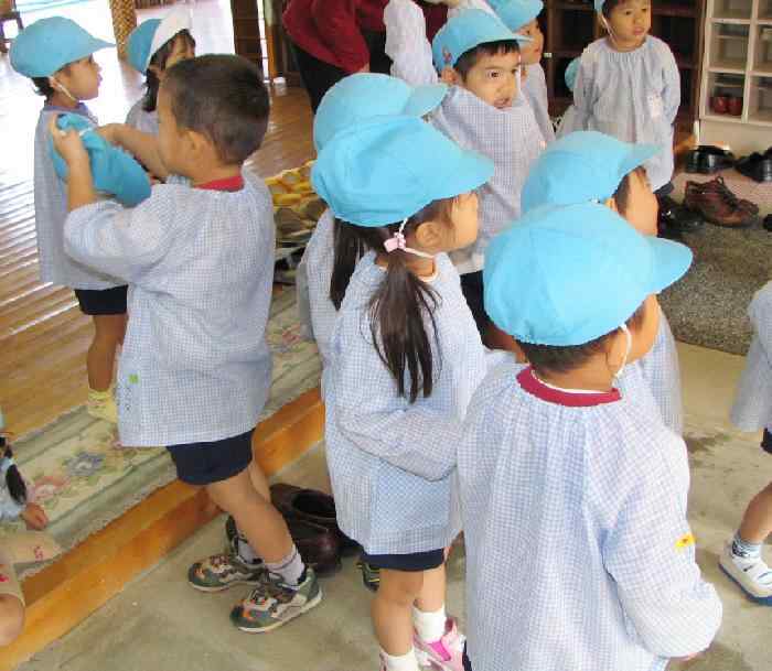 We have few details on the Japanese education system at this time. Of course the organization and age of the children has canged over time. We have little information on earlier periods. We have some information on the modern system. We do not know how common nursery schools are. There seem to be quite a number of kindergartens. I an mot sure if kindergrten is required. Presumably the children would be about 5 years old. Smocks are not a common school grment in Japan, but they are cmmonly worn in Japanese kindergartens. We believe that children begin primary school at age 6. There are currently 6 years of primay school which mean children in the final years are 11-12 years old. There are then 6 years of secondary school. Generally this is split into junior and senior high schools. Japanese students graduate at age 17-18 years of age agter 12 years of primary and secondary schools.