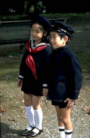 Modern Japan is a wonderful collage of traditional Japanese and Western influences. Actually even more interesting is that the Western influences are not all modern imports, some date from the 19th century. A national education system was one of the important reforms of the 19th century Menji Restoration that fashioned modern Japan. Thus it is understandable that the Japanese selected European styles for school uniforms. Here they chose Prusian cadet styles for the boys' uniform and British sailor styles for the girls uniform. Curiously at the time the military cadet styles were being worn in some European schools, but sailor dresses were not being used as school uniforms. European girls were wearing sailor dresses, but they wre not school uniforms. What is interesting is how foreign influences once adopted become locked into and do not change. Thus these raditional styles are very common in Japan while they have disappeared in europe where they have originated. These are not the only school uniform styles, however tey are very common. Thus the situation in Japan is that while traditional Japanese clothing is not worn, school wear is today a mix of Western 19th century and 21st century styles.