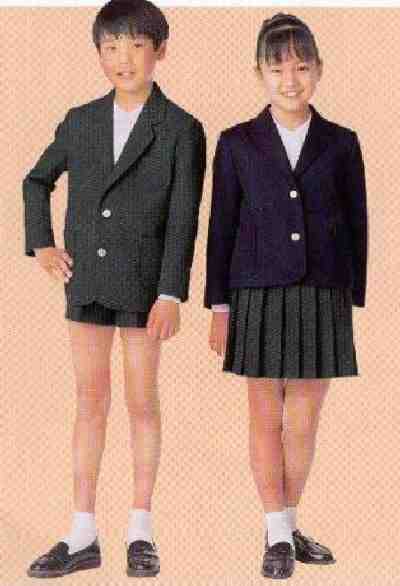 The blazer as a school garment was introduced to Japan after World War II (1939-45). Blazers are worn at both elementary and secondary schools, although it varies greatly from school to school. Some elementary school although they are most common at private schools. Often the blazers for younger primary school boys are Eton styled blazers without lapels. The blazers worn by secondary school boys more commonly have lapels. School badges on the blazers are not common as in England. Some elementary schools use them only for dress up occasions or for winter wear. Blazers are now becoming more common at secondary schools. Many secondary schools are now replacing the old army and sailor uniforms, which are perceived as old fashion, with blazers, white shirts, and ties--giving a rather British look. Japan is, however, a very tradionally oriented society and the old military styles continue to be widely worn.