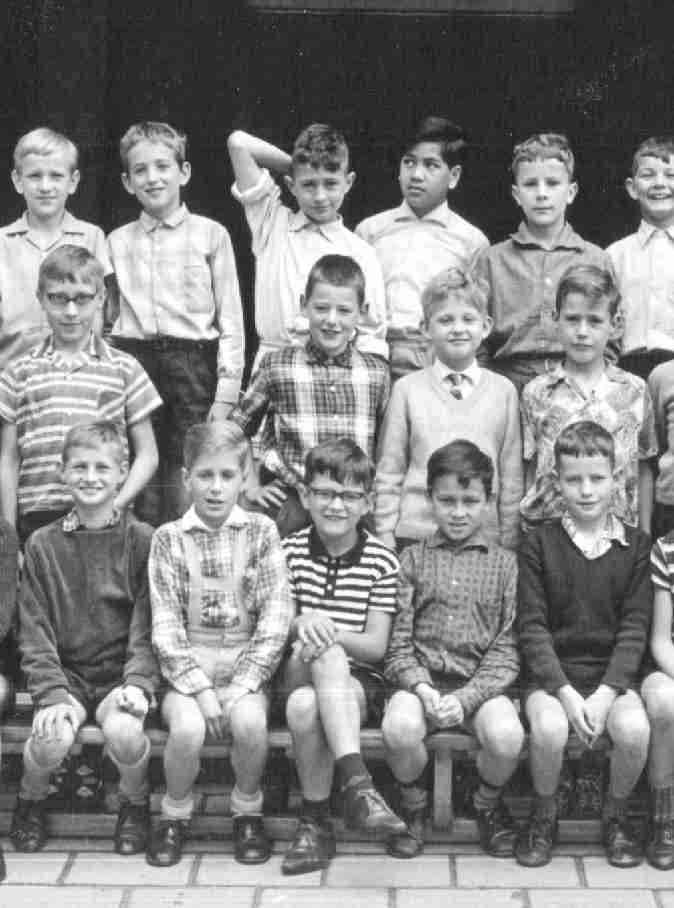 We note an image from a Dutch primary school in 1963 (figure 1). Unfortunately we do not know the name of the school or the type of school. Presumably it is a public school. Only boys are pictured. Does that mean that Dutch schools or classes were still divideded by generder? The voys wear casyal shirts, many with sweaters. The shirts are all collared shirts, many with bold patterns. Some boys button them at the collars. There are no "T" shirts, but some boys wear striped polo shirts. One boy even wears a tie. Both bots wear their collars open, but quite a few have buttoned them. All of the boys seem to wear short pants. One boy wears H-bar shorts. Several boys wear kneesocks, but mopst wear ankle socks. The boys wear both shoes and sandals. The boys all have leather footwear, we do not see any sneakers. These boys are dressed very similarly to the public schools we have noted in the 1950s images we have noted, but that perhapos is understandable as 1963 is early in the 1960s.