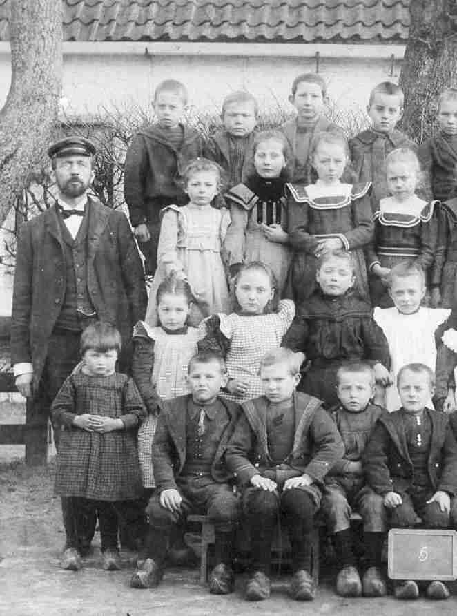 Here we have a school portrait taken in in Koudum. It apparently was a larger school as the group here all looks to be the younger children. Koudum is a small North Sea coastal village. There aew about 2,700 inhabitants in 2007. This was apparently the Christelijke (Christian?) School. I'm not sure what that meant. Surely the village was too small to have a private religious school. All the children are wearing wooden shoes which would suggest that they were the village childen and not a group whose parents could afford a private school. A Dutch reader tells us that this would not have been a private school, but rather a Christian school financed by the Government. He tells us, "In rural areas we had the School met den Bijbel, a Calvinist school with daily prayers, Bible readings and psalm singing."