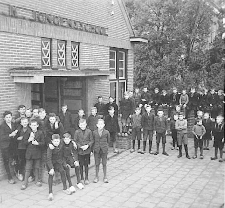 Zijtaart is a village in the Dutch province of Noord Brabant, not far from 's Hertogenbosch, the capital of the province. Noord Brabant and Limburg are the only provinces with a Catholic majority. When I saw the picture of the boys' school I suspected that it must have been a Catholic school, because the Protestant and public schools did not separate the genders. The girls went to a girls' school in the convent near the village. The rural location may explain the long stockings and wodden shoes.