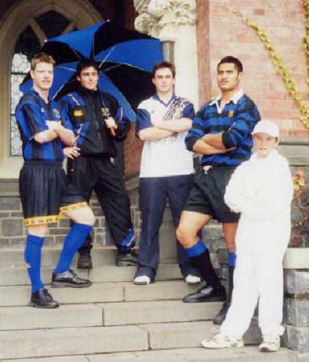 New Zealand boys wore the same gym and games (sports) uniforms as British boys. After World War II some differences have appeared showing the American influence and the introduction of American sports like basketball and baseball. These are minor sports and the uniforms for major sports continue to be similar to England as they are the same games played in England. Rugby dominates the New Zealand sports scene in New Zealand while in England it is an important, but not dominate sport. Probably no where else in the world is rugby as important as in New Zealand. In recent years the sports uniforms have become very stylish. One interesting aspect of the New Zealand school gym/sports scene is the effort to provide athletic opportunities to students of a wide range of athletic abilities. Thus schools generally organize a number of teams rather than just one team for the most talented atheletes. One of the most destinctive aspect of gym in New Zealand is the number of boys who play barefoot. In the United States and Euyropean countries this is not common. For one reason boys in other countries do not like going barefoot so much and for insurance and liability reasons, the schools would not let them.