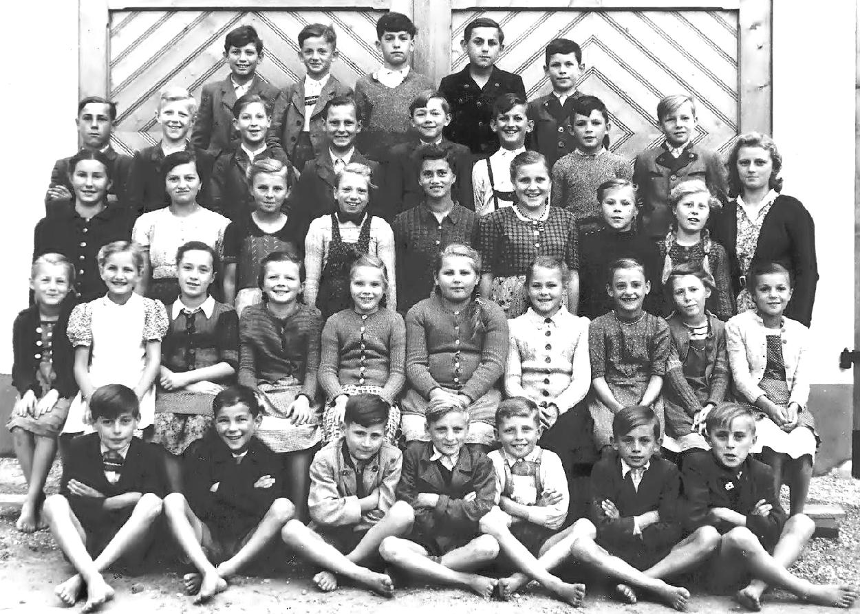 Here we see a village school in the Enns Valley. The Enns River is an Alpine river in Austria. The Enns flows for 253 km from western Austra east until joining the Danube north of Enns. The river has a J formation. The bottom part of the J is the flow east. The vertical part of the J is where the river turns north near Hieflau toward the Danube. This northern flown is what is usually referred to as the Enns Valley. While we know the village school was in the Enns Valley, we do not jnow waht village it was. We do know the photo was taken in 1952. It looks like it was taken in the early Autumn. The children are wearing jackets and sweaters. They are quite well clothed, however, all the pupils in the front row are barefoot, and probably most of the other children. Europe had been devestated by World War II including Austria. Austria was not a wealthy country before the War, especially beyond and the larger cities. Western Europe had by 1952 begun its economic miracle recovery from the War. In the case of Austria, the recovery wa limited because eastern Austria, including the Enns Valley was occupied by the Soviets (until 1955).