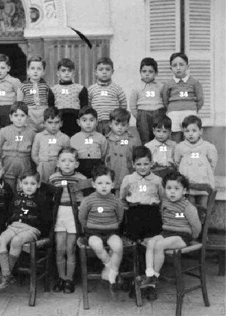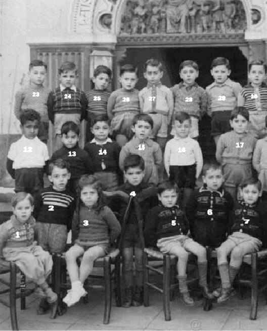 The class here is all boys. We thought it was an all boys' school, but we see girls in some classes. We note one image from the school from 1949. The class is not identified, but we would guess that it was a maternelle or kindergarten-level class. The 1949 class photograph is notable for the variety of outfits and hairstyles. The boys mostly wear short pants, but quite a number of boys wear romper suits or romper pants. At least one boy wears a smock. One boy wears knickers. Almost all of the boys have short hair, but one boy has long ringlet curls, unusual but not unknown at the time. An internet website about the school has some additional class portraits, but we do not see any further information about the school.