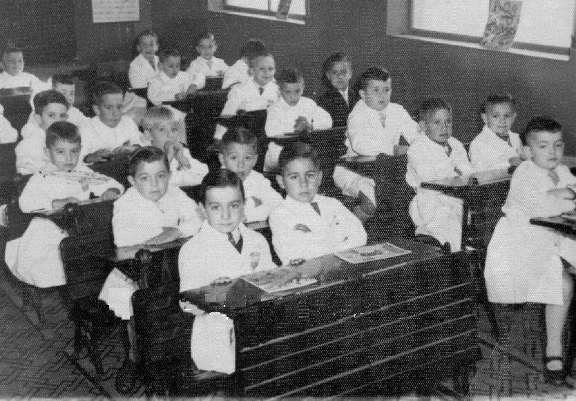 In this regard the Argentine schools seem similar to Spanish and Italian schools. An Argentine reader tells us, " During my years of schooling in Argentina (1950s-60s), which resembles very much the picture illustrating the theme, that was the norm. All the boys are neatly dressed with the pristine and impeccable whie lab coats and well behavior in the classroom as well as in the school was expected."