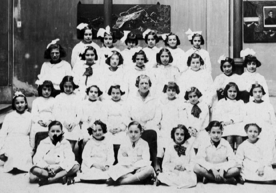 Argentine children at public schools were required to wear white smocks to school in the 1930s. Our archive is limited, bnut this seems to have been very widely observd. There appear to be different styles for boys and girls. Boys wore front-buttoning lab-type smocks. The girls wore back-buttoning smocks with Peter Pan collars. We are not sure if the different styles were required by the Governmnt regulations or convntions which developed. Hopefully Argentine readers can provide details on this. We notice bows at a few schools, but they do not seem very common and apparently were not required, but the children could wear them if they so desired.. They were common in neigboring Uruguay. Girls wore dresses of their own choice under the smocks. Many boys wore short pants and knee socks, depending on their age. This was as far as we know decided by the parents and not the schools. We areb not sure if any private schools also adopted the white smocks.