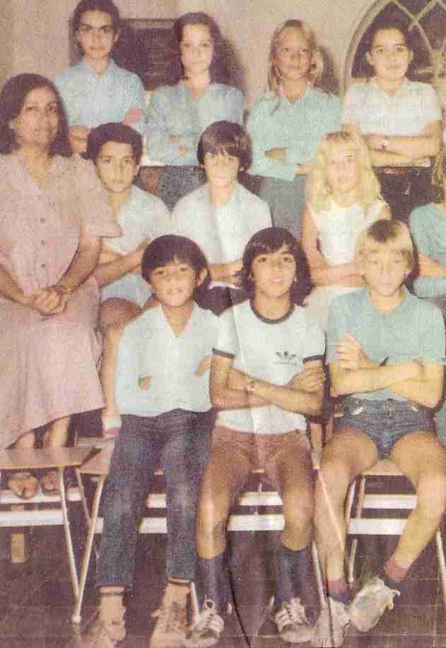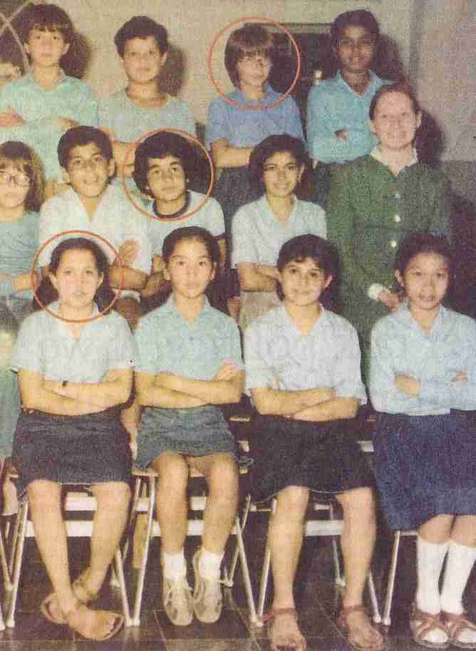 A HBC reader describes the experiences at in 1979. A HBC reader tells us, "A friend of mine was at school in Jaffa (a suburb of Tel Aviv, Israel) which took in Israeli Arabs and diplomats children as well as Israeli Jews. Her best friends were an Israeli Arab and an Israeli Jew - the three are circled. She has fond memories of those times (1979). The uniform was "blue" - as you can see most chilrden interpreted this as denim as far as skirts/trousers went and some wore t-shirts. A more liberal interpretation than would have been allowed in England at the time!