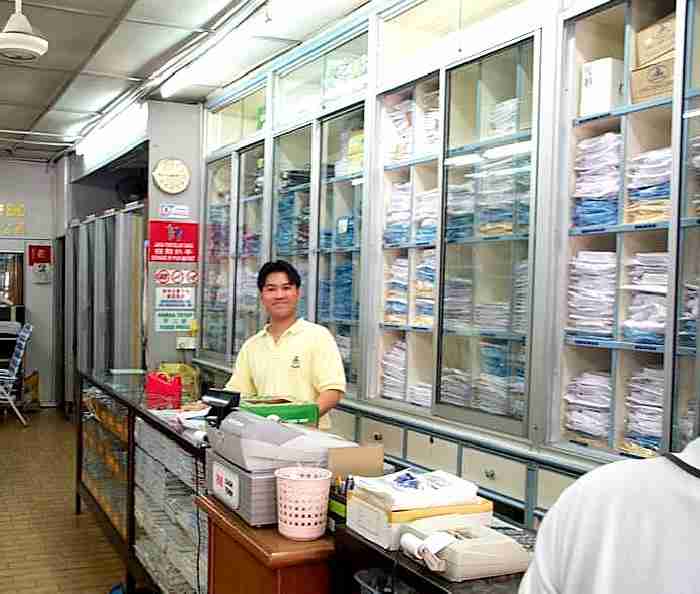Figure 1.-- Here is a typical school uniform shop in Penang. There was another shop on the sdame block. The shops also sell youth group uniforms. Click on the image to see the inside of the shop. |