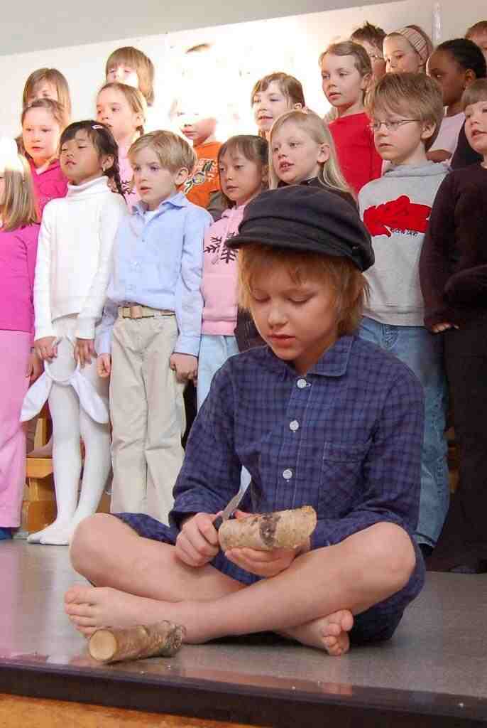 Norwegian children like children in other countries enjoy theatrials. Here there are a range of such productions from small classroom skits to important school plays. A reader sends us a scene from a Norwegian school play. The children are doing a skit based on the books of the Swedish writer Astrid Lindgren. These are popular throughout Scandinavia.