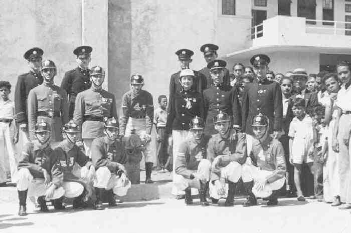band or cadet group within the school. The image coding suggests the school is located in Chila and the boys are " bomberos " or firemen, perhaps assisting the local fire department. The boys are, however, wearing different styles of uniforms.