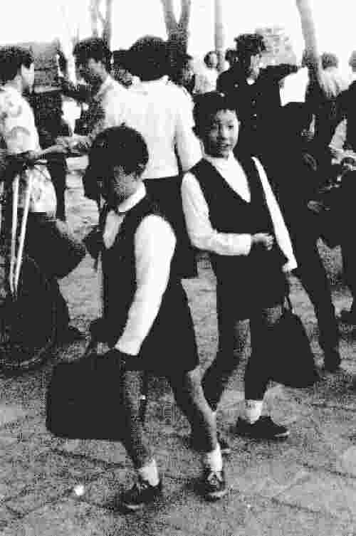 Our information on Korean schoolwear is very limited. Some Korean primary students wear uniforms. We are unsure, however, just how common this was. There does not appear to be a national school uniform, but rather one chosen by individual schools. I think many of the uniformed schools are private schools. Some have short pants uniforms, but this may change seasonally. We believe that most primary school chilkdren do not wear uniforns. We do note some boys wearing the cadet style caps. Rather we see the children wearing their own clothes to primary school. Students in secondary schools more commonly wore school uniforms. Boys in the 1970s wore military cadet uniforms as in Japan. This shows the very significant Japanese unfluence in Korean education. I'm not sure if this is still the case today.