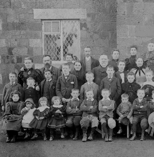 We know very little about the Llanwnog School. Llanwnog is a village in Powys. The Llanwnog School seems to have been a church school. We note a formal school portrait, we think in 1891. We see both the children and teachers. The staff seems rather large for a school this size. As with most early Welsh schools, it is a substantial stone building. The group seems rather serious, common in these early school portraits. This portrait is notable for showing the children's headwear. Most of the boys wear knee pants or knicker suits. One boy wears long pants. The girls wear dresses, some with pinafores. All wear stout boots, in part because many children had quite a long walk to school along stony paths.