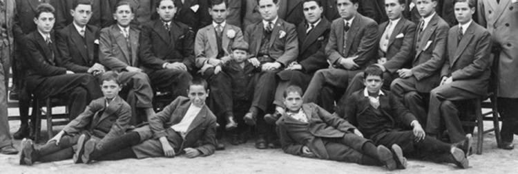 Notice the small child in the center, who must be a relative of one of the older boys or maybe of the teachers. Since there is a relative (the small child) in the photo, perhaps four younger boys who are wearing knee pants with black stockings are younger brothers of the class although they more likely are old enough to be in the first or second year of secondary school--about 11 or 12 perhaps. I found this photo on the Internet in a context that suggests to me that the school may be Jewish, but we arenot certain of this. If so they were probably killed within months of this portrait being taken.