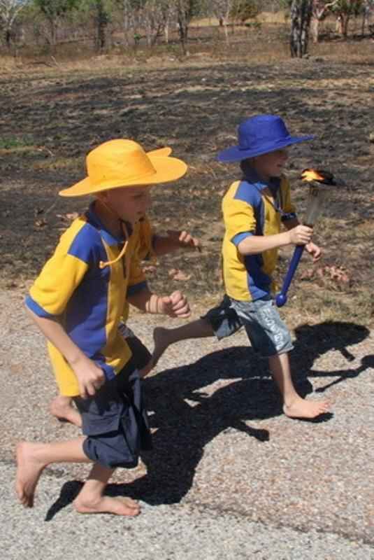 We note a variety of fund raising activuties. Some of the events are to raise money for school activities. Schools also sponsor a variety of special events. These are often associated with charities and are designed to lift the awarness of the children to various social issues. We note some pupils of Pine Creek Primary School, about 200 km south of Darwin (Northern Territory, Australia). They are engaged in the "World Harmony Run", a torch relay.