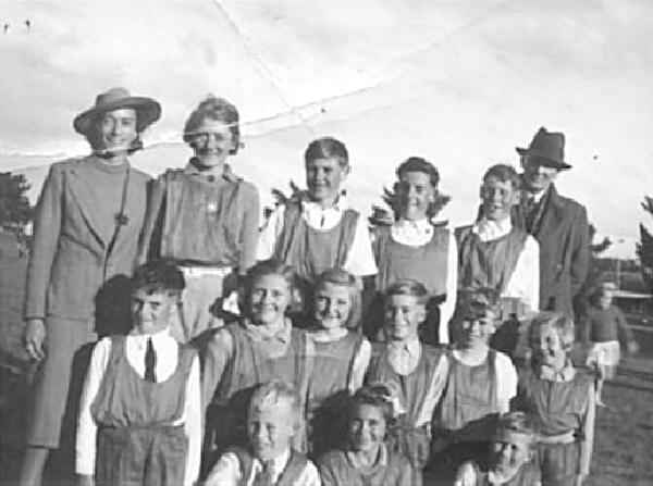 We are unsure anout this photograph which was apparently taken in Tasmania, perhaps in the 1940s. They childten look to be a school sports team of some kind. As the adults are dressed up, it seems more like a team photo rather than a group involved in physical education. It is a bit difficult to tell just what the children are wearing. It looks to be some kind of gym slip of some kind which would be very unusual for boys. Hopefylly our Australian readrs can provide some insights about this photograph. An Australian reader tells us, "To me it looks like the students are wearing a form of vest that fits over the head. Some of the children have the vest tucked into their shorts. They usually tie at the waist. They are worn to define which