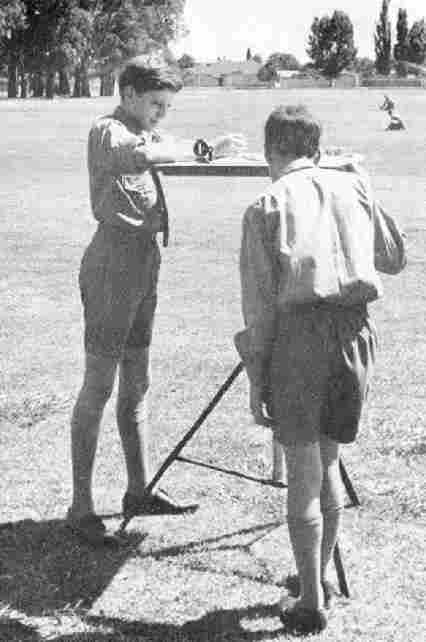 Figure 1.--These boys during the 1960s are doing a surveying exercise. Australian boys in the immediate post-war period continued to wear Englis-style school uniforms. |