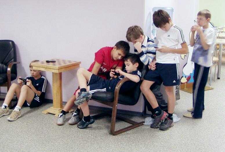 Primary school children have free time for play at various times during the school day. This includes both recess and lunchtime. The children use this time for various activities which have varied greatly over time. The weather and time of year is another factor. In good weather there are all kinds of playground games. This varies sasonally. Modern boys are enchanted with hand-held electronic modern games. In the West we began to see these games in the eary 1980s. I'm not sure when they appeared in Russia. They fit in easily to the school day. As they are a good diversion when the children can go outside. They can be played individually or competitively. As they can be played in just a few minutes or easily put on hold if time runs out and taken up later. While the boys are mesmerized by the games, the girls couldn't care less about them.