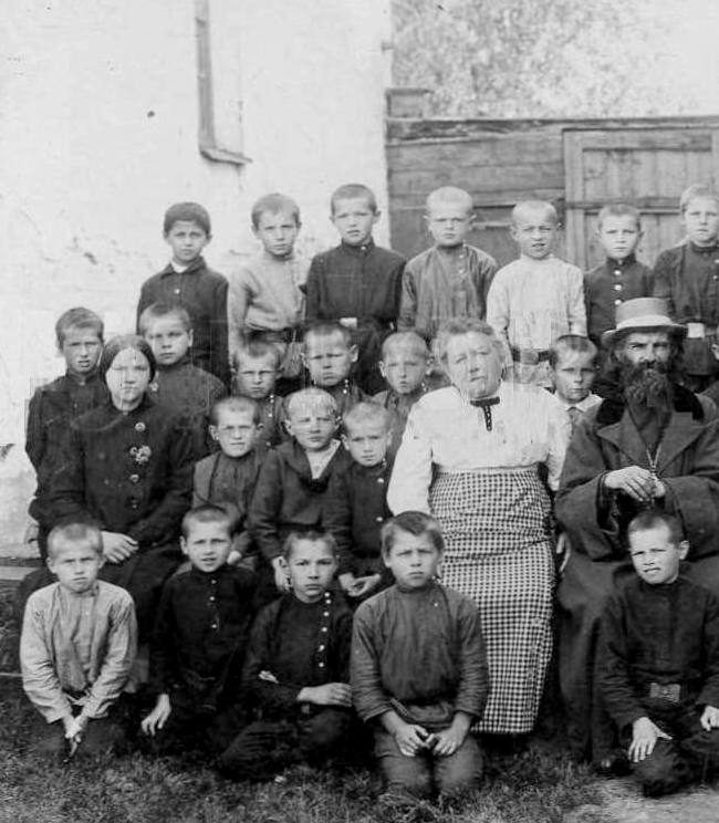 The earlies images we have of Russoan boys show them commonly wearing tunics to school. These are boys in rural primary schools. The tunics were basically serf clothing, what both boys and adult men wore. There were few if any schools in rural areas at the beginning of the 19th century, but by the end of the century, primary schools existed throughout the Russian Empire. And tunics worn with belts were the primary gaements worn to school. It was not an special school garment, it was what the boys normally wore. Many of these boys had little more to wear than what they wore daily. We are not sure what boys wore in city schools, but we think that these tunics were also worn, but not as commonly. Secondary schools in the city had actual uniforms, mostly military styles. Some of the styles were tunics which was baically the style worn by the Russian Army. These tunics which were so common throughout the 19th and early-20th centurym but rapidly disappeared after the Russian Revolution and Civil War (1917-21). This changed after World war II, we begin to see boys wearing school unifirms based on the Red Army tunics.
