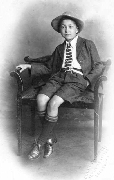 A HBC reader comments, "Looks like this young Scotsman is of mixed descent, a Eurasian boys if you ask me. I am very interested. I've always felt that British Eurasians are low key compared to their Dutch counterparts. In Holland they are highly visible and have played a prominent role in society for a long time. There are lots of photographs of pre-war Eurasian children and students. However
