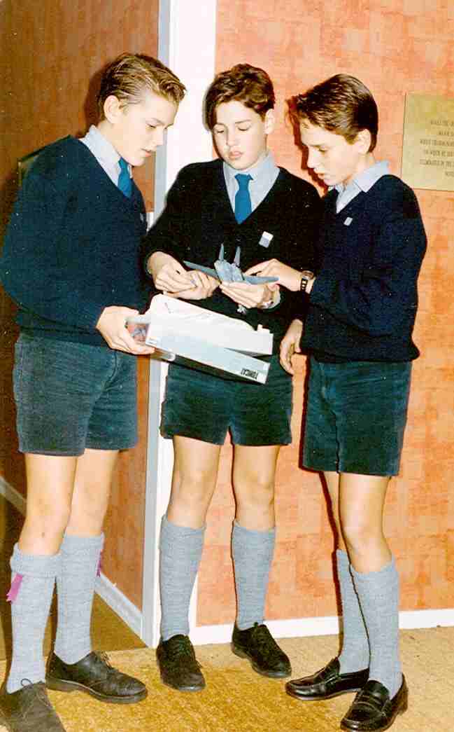 Most schools had grey or black long trousers or grey shorts. This was basically the same colors as worn in nglish schools. We note several Scottish schools had blue shorts as part of the uniform. The Loretto School near Edinburgh had a major impact on New Zealand school uniforms. A New Zealand educator teaching at Loretto was so impressed with the uniform that he introduced it at Wanganui Collegiate and it was then adopted by many other New Zealand schools. Shorts trousers began to decline at Scottish schools in the 1970s, but have not disappeared. One Scottish observers notes that now and again he sees older boys wearing short trousers on their way to/from school. Most of them look to be in the 12/13 age group. Occasionally older boys wear shorts but most older boys wear long trousers.