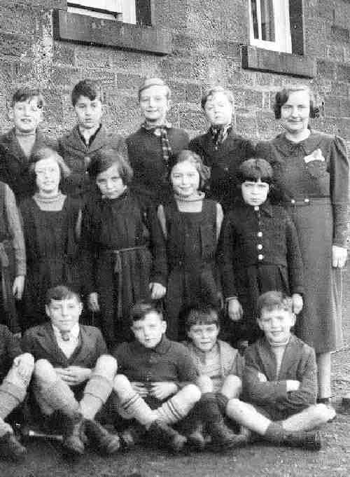 The school portrait was taken shortly after the start of World War II (September 3, 1939) after the British conducted a massive evacuation of children from the cities. This image is interesting because it shows some of the evauee children at their new school. Many of the images of the evacuation show the children being evacuated, but not where they wound up. The evacuees were sent from Glasgow which was both an industrial and port city. Glasgow had important shipyyards. Glasgow included areas with desperately poor people. The Glasgow children arrived in Kirkmichael September 4, 1939). Biliting officers allocated the children to local people. The evacuation process was efficently done throughout England. What happened in the relocation centers was often chaotic with people picking over children. This did not happen in Kirkmichael where the billiting officers made the assignments and there was no appeal. The resulting matches were often a lesson in culture shock. Children were, gor example, allocated to Cloncaird Castle where the Dubs family lived. In effect some of the poorest children in the U.K. wound of living in oppulent suroundings. Sometimes the opposite occurred when well-off children found themselves living with relatively poor families. There were other matters sych as children reared pemisively put with strict hosts and visa versa. The city children were also seeing sheep and cows for the first time. There were many tars and home sick children writing their parents to come and get them. As one of the boys writes years later, "... many children