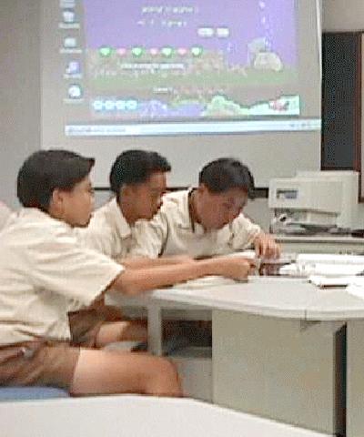 ![]() Figure 1.--These Singapore secondary students wear trim fitting short pants. We have noted both brown and blue shorts, but there may be other colors as well. Long baggy shorts are not allowed. |