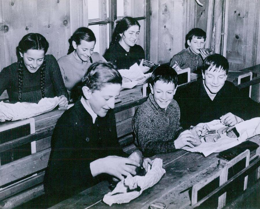 Classroom activities are fairly standard. The activity program at Swiss schools tended to be somewhat different than in America. Swiss and other Europan schools had a more academic orientation than in America. Not that it was all academics, but the extra-curricular activity program was much more limited. We see fairly standard classroom arrangements through the World War II era, meaning banks of benches which left little room of movement. The children all faced the teacher at his or her desk or at the black board. Chalk and slate boards were the limits of technology. The children were set in place to mlisten to the teacher and work with slate boards and class note books. Recitations were important. There was little group activity. And indows and light were limited. We see this begin to change after the revovery from the War. (Switzerland managed to stay out of gthe War, but was the economy was badly affected by the War.) We see the class rooms opening up with more windows and light. And we see the old school benches which served for a century being done away with and the children provided with individual desks. We see far less emphasis on recitations. Even though Swiss clss rooms today are very different than pre-War classrooms, we note reports of poor air quality. ["Poor ...."] The greatest change in the Swiss classroom has not just been opening it up but the adoption of tcvhnomlgy, namely calculatirs and computers. Swiss educators are now debating just how much technology is beneficial in the classroom. [Leybold-Johnson]