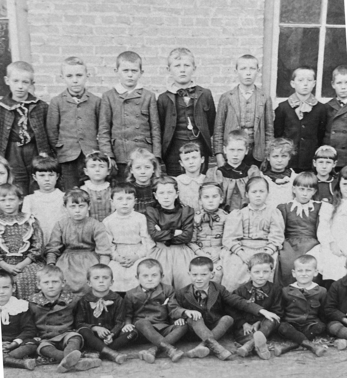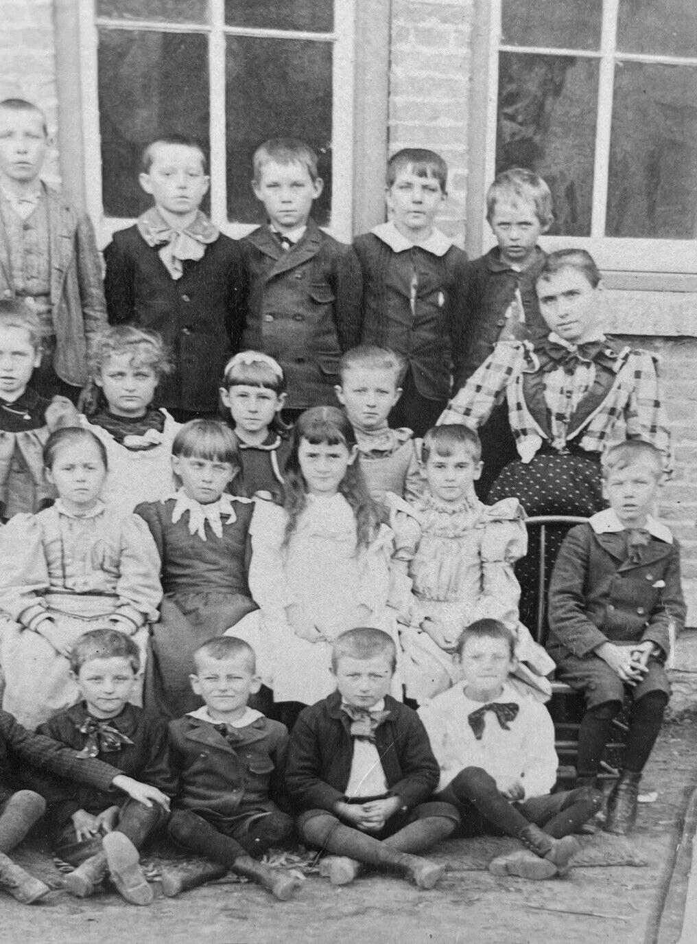School portraits by the 1890s had become very common. Photography improved and had become incerasingly affordable. We see class portraits from all over the country, including one-room schools on the rapidly shrinking western frontier. We see boys commonly wearing suits to school, even in country schools, although there boys in warm weather commonly just wore blouses and knee pants. We still do not see many boys wearing overalls. Rather the boys are for the most part dressedup to go to school. Nor do we see many Fauntleroy suits, even though the 1890s was part of the Fauntleroy era. We do see many boys wearing Fauntleroy items, including Fauntleroy blouses abd floppy bows. Notive the number of colored blouses. Many boys wore straight-leg knee pants, especially in city schools. Knickers were not very commonabd we do not see them at private schools as was the case in Britain. The type of pants did vary. We see boys at some schools wearing long pants, but by the 80s this was not very common exceot at rural schools. Most boys. if they did not drop out earlier, ended their schooling in 8th grade (about age 13 years). The secondary school sytem was expanding. And in the 90s, knee pants were common even at these schools, but for the most part the older boys were wearing long pants. We are not entirely sure why there were such variations. Age of course was a factor. Boys and girls commonly wore long stockings. Black long stockings were especially common. Many younger boys wore blouses with large collars, sometimes ruffled Fauntleroy collars. We also see sailor suits, especially in urban schools. Sailor suits are not as common as one might think, in part because it appears to have been more of an urban, middle-class fashion. Girls wore dresses, often with pinafores, but this varied. We see some schools wghere the girls are not wearuing pinafores. Some children came to school barefoot, especially in rural areas, but this was not practgical if long distances were involved. We have some information on individual schools.
