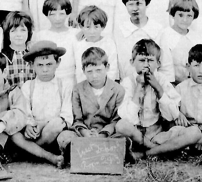 During the 1910s the United States was finally approching the the point at which half of the population was living in urban areas which meant atending urban schools rater than small one and two room rural schools. Thus the educational expeiene was changing. And this crossed an imprtant educational threshold. Not only were more children going to city schools, but the were living in communities where secondary schooling (9th-12th grade) was possible. The rural schools only went up to 8th grade. You had to live in a city or town of sone size to attend secondary school meaning high school. Both Germany and America had lead the way in public education. But this mean basically primary education. America would lead the way in public secondary education. Few working-class Europeans continued their education into secondary schools. This began for the first time in America. And the course offerings included shop classes to prepare teen age boys for non-university careers. There were major changes in schoowear as wwell. that occurred early in the 1910s with boys switching from knee pants to knickers. Many boys at the same time in rural areas began wearing bib-front overalls. We also see this very clearly in the photographic record. These overalls were not new. Workers and rarmers had begun wearing them in the mid-19th century. For some reason, it is only in the 1910s that for some unknown reason, boys in rural areas began wearing them to school. This was not just a few boys, but we see large numbers of boys in rural schools suddenly wearing them. We have no idea why overalls appeared so suddenly in rural schools. Some boys wore overalls with suit jackets, we think because wearing suits to shool was stll common in the 1910s. It was also common in rural areas to come to school barefoot. This was not unknown in city schools, but was much more common in small towns and rural schools.