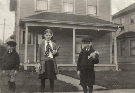 Most American children walked to school in the 1920s. As cars became more common, the patrol boys became a standard institution at most schools to help the younger children get safely to school. Children at city schools either briought their lunches or went home for lunch. Not many schools had cafeterias. Many elementary schools adopted a special day for Scouts to wear their uniforms. Boys commonly dressed in suits for school in the 1910s. We still see that after World War I in the 1920s, but not as commonly. Especially by the end of the decade we see many boys wearing more casual clothes for school. The youngest primary (elementary) boys might wear shorts pants for school, but knickers were much more common, especially by about the 3rd grade. Knickers replaced kneepants in the 1910s and were quite common even in secondary school. Knickers continued to be standard schoolwear for boys in the 1920s, although we no longer see older highschool boys wearing them. Sweaters and corduroy knickers were a popular combination. The 1920s were the first decade in which sweaters became a major school item. Knickers were worn mostly with long stockings until the end if the decade when we begin to see brightly patterned knee socks. Boys almost never wore knickers with ankle socks. We also see a shift from high-top to low-cut shoes over the decade, Sneakers were becoming popular durung the 20s, but were not commonly worn to school. We continue to see differences between city and rural schools. Girls almost always wore dresses or blouses abd skirts to school. Highschool girls often middy blouses and bloomers for gym in the 1910s. We still see that in the early-20s, but we begin to see girls at some schools wearing short pants for gym. We also see romper suits. We continue to see quite a number of 8th grade graduations. Many children still did not go on to high school after the 8th grade in the 1920s, although it was becoming more common. Thus 8th grade graduations were still an important event.