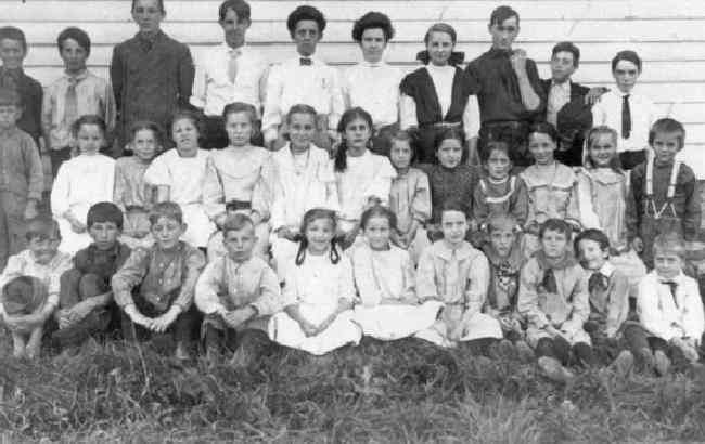 We have one image taken some time in the 1910-11 school year. Unfortunately it is a little difficult figuring out just what the children are wearing in this shot. The photograph is identified as being taken during the 1910-11 school year. One interesting observation from these early 20th century New York school images is that even though they are taken at a rural school, none of the boys are wearuing overalls.