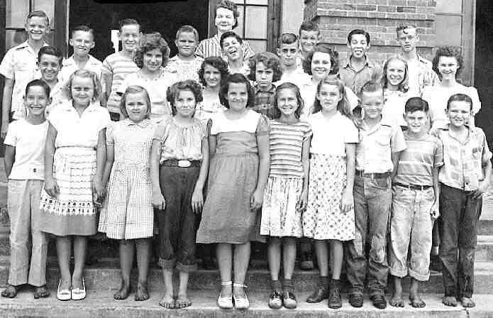 Here we see Mrs. Row's 5th grade class in 1948. The children would be about 10 years old. Some have probably turned 11, depending on when the photograph was taken. There are no Black children as the schools in Florida were segregated. There is, however, one Indian boy. The Everglades and Okeechobee area was where the Seminoles lived. The girls almost all wear dresses, except one girl who wears jeans. We suspect this was a sign of poverty more than fashion. Most of the boys wear collared shirts without "T"-shirts underneath. A few boys wear colored "T"-shirts. All of the boys wear long pants despite the hot weather. Many of the children are barefoot, including some of the girls.