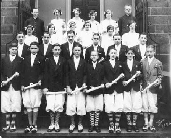 We do not know if this was when the school was actually founded. This archives provides some insights on dress and uniform policies at one specific parochial school. The images do not necesarily provide details on how the children normally dressed at school, but the formal portraits are still useful. We are not sure about the dress code, but there does not seem to have been a unform until the 1960s. The boys appear to have worn short pants or knickers until the mid-1930s when long pants became more common. Graduation ouffits also varried over time. Graduation outfits were not what the children normally wore to school, but the children seem to have graduation portraits taken in their uniforms during the 1960s. This suggests uniforms were adopted in the 1960s, but it could have been earlier. The school website has an archive of First Communion and graduation portraits dating back to 1926.