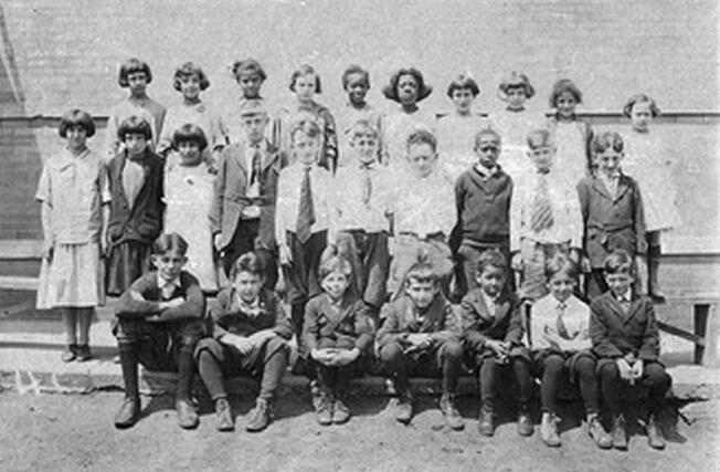 We do not know the name of the school here, but we know it was a northern school and that the photograph was taken in 1922. A reader suggests that children seem to differ slightly in age, so perhaps this was a small school with several classes combined. I'm not so sure. Given the building behind the children I would say that it was a fairly substantial school. I'd say the children were about 10 years old. Most of the boys wear suits with neckties or white shirts with ties. The boys in the front row are all wearing knickers with black long stockings. Most of the knickers are fastened above the knee, but in one case (the boy on the extreme left, front row) we see knickers that fasten below the knee. The girls are mostly dressed in white or light colors. Most of the skirts are mid-calf length, but at least one girl wears a much shorter skirt with what looks like knee socks. Long stockings continued to be standard wear for school children in the early 1920s, but knee socks were beginning to be worn as an alternative, especially the endofthedecade. Note the center parting of the hair on many of the boys