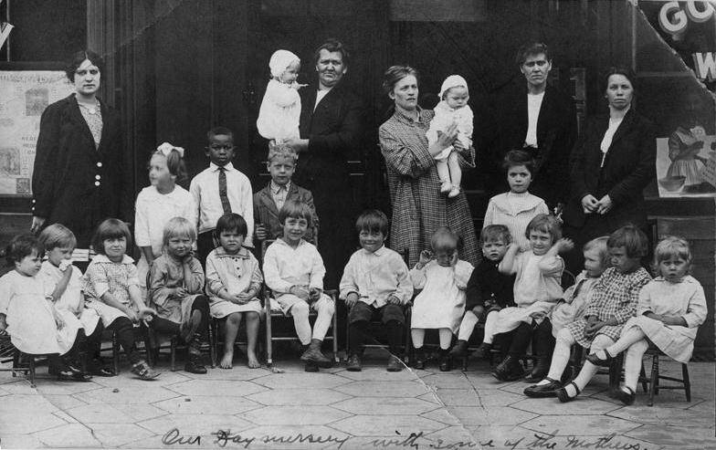 The prevalence of pre-schools in America began changing after the turn-of-the 20th century. We begin to see pre-schools appearing for the first time in any number. Kindergatrens were the first pre-schools to be established in any number. Pre-schools for younger children were slower to develop, but we do begin to see some. A major factor here was the increasing urbanization of the United States. American cities were expanding at record rate. This was because of the rapid growth of America's industrial economy and the flow of European immigrants. And for the first time we have substantial photographic evidence. Here we have a good example, we think from the 1910s (figure 1). Unfortunately we have no details about it. The 1920s were the first decade in which the majority of the population lived in cities and small towns. We begin to see Kindergartens increasingly being established as part of the public school systems, but pre-schools for younger children remained primarily in the public sector. The early pre-schools seem to be in working-class neighborhoods here it was more common for mothers to work. any more affluent mothers did not work and could often afford help in the home. As more and more mothers worked, the demand for pre-schools grew. This was especially the case during World War I and World War II. Many women worked outside the home for the first time during World War II. There were also experiments by the New Deal's Works Progress Administration during the Depression. After World War II the increasing involvement of women in the work force greatly expanded the need for day care. The problem was that daycare can be very expensive, virtually unavoidable for working-class families, let alone single women. A better case can be made for pre-schooling than many of the higher-profile issues the Progressives in America tend to launch onto in heir campaign to change America. Unfortunately the media and leftist forces can generate wide spread support for destructive nonsense like 'Defund the Police', but not for pre-schools which might actually change peoples' lives for the better. America still does not have publicly funded pre-schools. And it continues to be a major expense for American families, unaffordable in many cases.