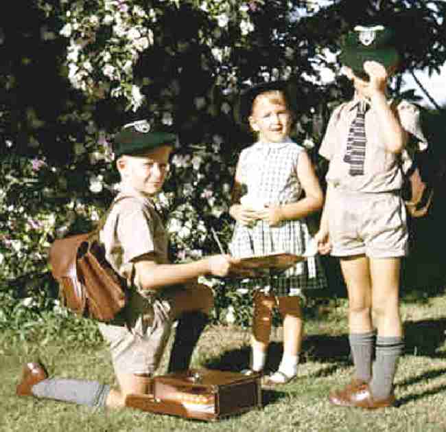 We note that many boys in the mid-19th centuy in both America and Europe used a kind of belt around their books for school. This was standard in rural America. Most European boys in the late 19th and early 20th centuries had leather other the shoulder book bags. we are not precisely sure whn this style of bookbaf first appeared. This was primarily a style for primary school boys. Many of these look to have been of rather standard design. Thy seem rather large. Presumably boys at the time were mot intended to leave their books at school. Boys often had a smaller satchel for lunch, but this varied among countries. The same style seems to have been common from the late 19th century to World war II. After World War II, hand carried brire case-like satchels became common in Europe. we have seen them in america, but they were not as popular. American boys by the 940s were beginning to use military style back packs. Gradually companies began to offer these back packs epecially made for children and teens. These have also become very popular in Europe.