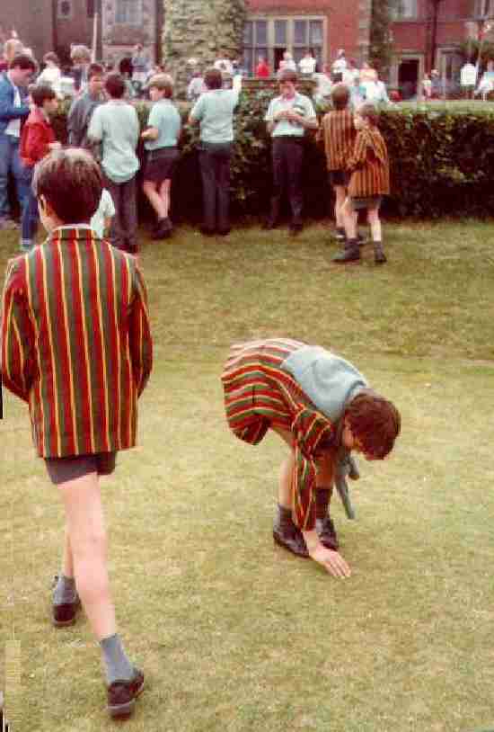 Schools also had a variety of events such as fetes or sorts day. Here uniform requirements were more relaxed with some boys wearing their blazers and others just their shirts or jumpers, especially as the day progressed. Boys at boarding schools generally put away thrir blazers to dave them for good. Here we see the boys wearing their blazers for a school fete (figure 1). At this school, they wear them for special occassions like a school fete, an open day when the parents visited. The boys at this boading school dressed up in their blazers, bit as the day progressed, many discarded them.