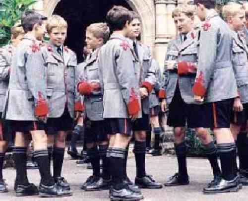 Some of the schools have suits rather than blazers. Some schools have grey suits rather than a colored blazer and grey trousers. Almost always these suits are grey.