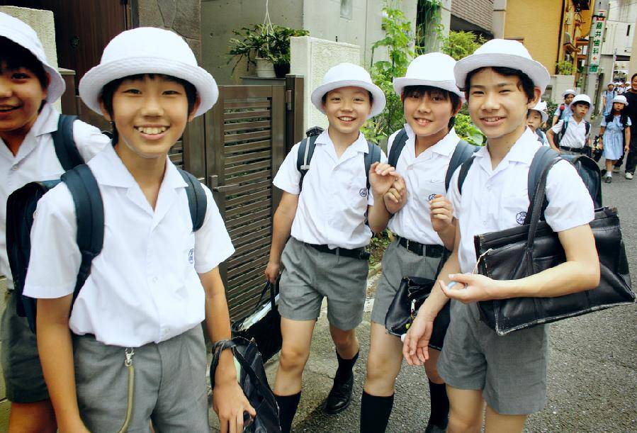 Gender is another intesting topic concerning rounded-crown hats. The photographic record provide arange of insigts concerning gender. Rounded-crown hats seem most prevalent with the girls at Japanese schools, but we see boys wearing them as well at quite a number of schools. As far as we can tell there are no differences in the hats worn by the boys and girls. As a result, they do not seem to have establish gender conventions in Japan. The school uniforms at the various schools whete we see these rounded-crown hats for the boys and girls were in some cases similar and in other cases quite different, but the children might wear the same hats. At some schools the boys wore caps and the girls wore these rounded-crown hats. We also see plenty of schools where all the children, both boys and girls wore them. We are unsure about the children's prefrences, if any, either the boys or girls. Perhaps our Japanese readers will be able to provide some insights concerning these hats.