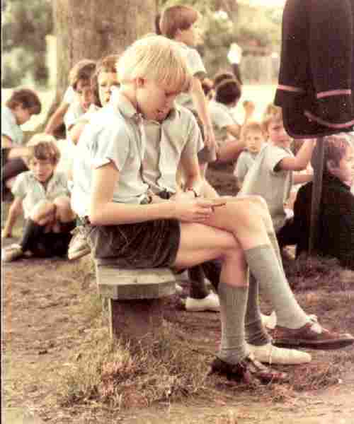 Several countries, primarily England and former English colonies like New Zealand, commonly wore grey shirts which do not show dirt as well. I'm not sure when the grey shirts were first introduced in England, but it was probably in the 1920s as Eton collars began going out of fashion. They were clearly in wide use by the 1930s. Once they were commonly worn by most English school boys. Two of the most widely worn brands were Viyella and Clydella. They are still worn at some private schools in England, especially the prep schools, but by the 1990s not commonly seen at state schools. New Zealand boys have a seasonal summer uniform of grey shirt and matching grey shorts and commonly wear heavier grey shirts during the winter. They are also still worn in some areas of Australia, especially at private schools.
