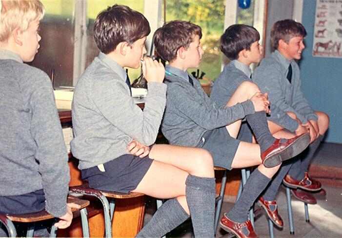 Our British reader began secondary school in the 1970s. He writes, From 1970 on - nobody wore them except for the "German" boy I told you about and my little brother never wore them at his new primary school where they didn't have uniform and an early form of trainers were coming in. As a result, the style began to be seen as an upper class style. I did want to wear my sandals on my first day at secondary school but my Mum wouldn't allow it as she wanted me to look extra smart.I am glad as I would have stood out - and as I say it was probably against the rules. I only wore them after that on holidays - never around the streets in London - but then we'd moved to a tougher area. I also told you that Didier, my little brother's French exchange student, did wear sandals and got stick here in London, but that was about 1974. I do know that I noticed German boys wearing sandals at an older age when I was there - but they were of a different type to ours. I'm not sure of this - but I don't think many boys at day schools in England wore sandals after the age of 11 or so when I was growing up - and by the 70s hardly anyone older than 8 or 9 wore them out of school either - trainers coming in.