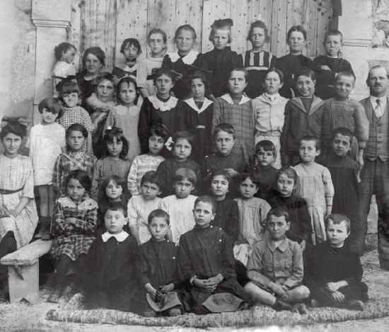![]() Figure 1.--This rural French school class was photographed in 1920. Notice that most of the boy wear smocks. One boy wears a suit and another a sailor suit. The boys wear solid color smocks, many black or dark blue, but there are anumber of lighter colors. Many girls wear patterened smocks. |