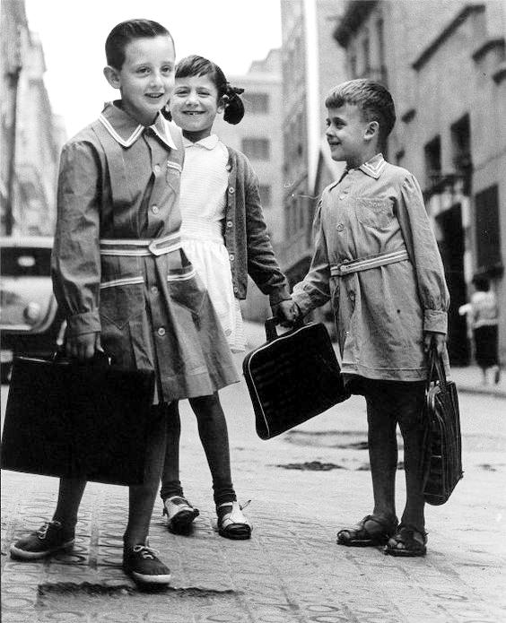 Detailing on smocks was not all that common. They represent a small fraction of the smocj images we hve collected in our archive. We do, however, see some examples. Most smocks, except for gingham smocks were solid colors. A few had detailing of various forms to provide a little contrast and to make them more fashionable. Mothers apparently wanted to add some detailing to make the plain colored smocks a little more attractive. This did not begin until the interwar er, but seems most prevakebt in the 1950s. Contrasting fabrics or cloths can be used in the detailing. This can be fabric in a different pattern and or color. We also notice braid. HBC believes that this was primarily the mothers work. We doubt if the boys were all that interested in the detailing.